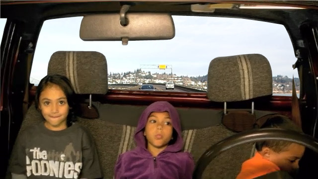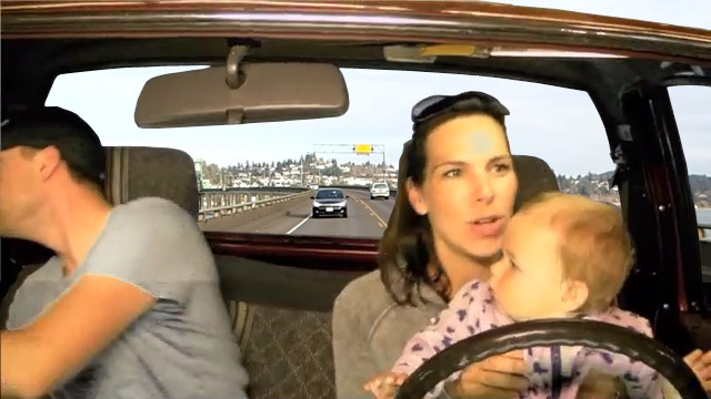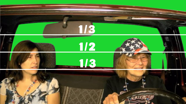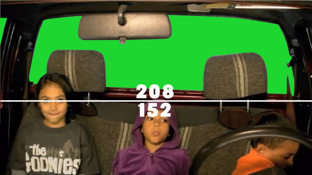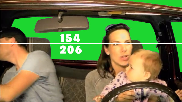 COMPOSITE Here is an image of the raw footage composited into the third of our sample images. Note the high horizon line, and how the two wome n in the car look smaller, because this view would only be achieved if the camera was mounted well above their eye level. |